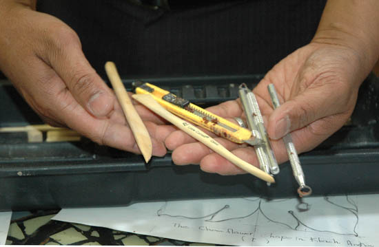 An MCC Artist Fellowship also went to Yary Livan (Lowell, MA), master of traditional Cambodian ceramics and kiln building. His work draws on the rich heritage of Cambodian culture, including influences from ancient imperial Khmer kiln sites, such as Angkor Wat, and incorporates Khmer imagery, relief carving, and design. Livan recently served as master artist in MCC’s Traditional Arts Apprenticeship Program, passing on what he knows of kbach, the basic element of design in Khmer art, to apprentice Samnang Khoeun. The two are building a smokeless wood-burning kiln on the grounds of Lowell National Historical Park.
